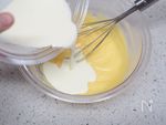 グループA 牛乳 100ml、卵黄 2個分、ホットケーキミックス 10g、砂糖 50g でカスタードクリームを作る。牛乳と卵黄を混ぜておく。 |