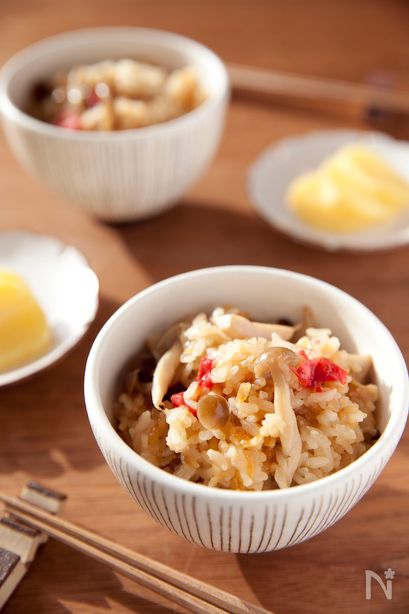 秋の味覚きのこをたっぷり使った炊き込みごはんです。 今回は梅干しを入れて疲労回復にも効果的にアレンジしました。梅が苦手な方は省略してもOKです。