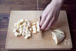 干し椎茸は水で戻し1cm角に切る。 たけのこ、にんじん、豚肉は1cm角に切る。 |