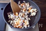 3にA しょうゆ 大さじ3、オイスターソース 大さじ1、紹興酒(酒でも可) 大さじ1、干し椎茸の戻し汁と水を合わせる 1カップ 、もち米を加えて汁気がなくなるまで炒め煮にする。バット等にだして粗熱を取る。 |