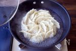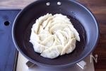 フライパンにサラダ油を中火で熱し、火を止めて餃子を並べ入れる。 | |