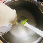 ココナッツミルクを鍋に入れて弱火で熱し、煮立ってきたら火を止め、アガーと上白糖を加えて混ぜながら煮溶かす。 | |