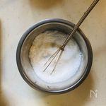 ・杏仁霜を小鉢に入れて生クリーム大さじ1〜2(100mlの中からとりわける)を加えて混ぜ合わせて溶かしておく。 ・アガーと上白糖をボウルで一緒混ぜ合わせておく。 |