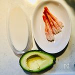 アボカドは一口大に切ったものをごく薄切りにする。 甘エビは尾を取る。 |