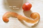リンゴの皮を剥く要領でカリカリ梅の皮の部分を包丁で切る。 | |