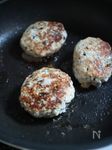 鶏、豚ひき肉に塩を入れよく練り、卵、下準備A.Bと1の炒めた玉ねぎを加えよく混ぜ合わせる。 4等分し、丸めて空気を抜き、形を整える。 |