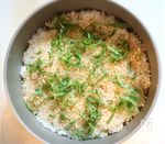 ごはん250gを敷き詰め、その上に白ごまを振り、千切りにしたしそを散らす。 | |