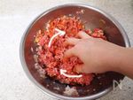 【1】に合いびき肉、卵、塩、こしょう、ナツメグを入れて、空気を入れるようにこね混ぜる。 | |