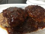 ハンバーグを焼いたあとの焼き汁で作る簡単煮込まないデミグラスソースでいただくハンバーグです。