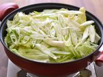 土鍋に白菜の芯から葉の順で入れ、ねぎを散らす。 | |