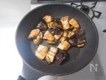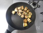 フライパンに純正ごま油濃口を大さじ1入れ、なすを入れて焼く。底面が焼き上がったら裏返しにし、片側に寄せる。 | |
