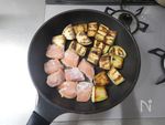 鮭は火が通りやすいので、なすに火がある程度通ってから、鮭をいれてください。