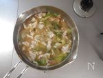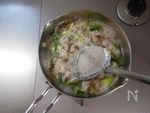 豚肉に火が通りはじめたらねぎを入れて炒める。 | |