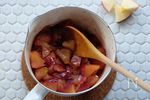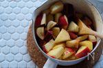 ③を再度火にかけ、りんごと残りのグラニュー糖を加え、カラメルが全体に絡むように混ぜ合わせ、ふたをして弱火で20~30分間煮る。りんごがくずれないように注意しながら、時々混ぜる。 | |