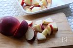 りんごはよく洗い、くし型に切り芯をとる。 2cmくらいの厚さのイチョウ切りにする。 |
