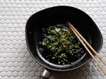 フライパンにごま油を熱し、にんにくとしらすを入れしらすがカリカリになるまで炒め、かぶの葉と塩を加えしんなりするまで炒める。 | |