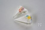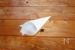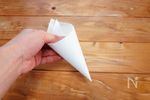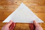 【コルネの作り方】 20×20㎝ほどのクッキングシートやOPPシートを対角線に切る。 |