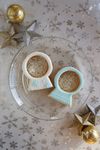 アイシングをしていないクッキーの飴部分にアラザン、ミニビーズ(白)などをのせる。 アイシングをしているクッキーの裏にアイシングを適量塗り、アラザンをのせたクッキーの 上に重ねる。 アイシングが完全に固まれば出来上がり。 |