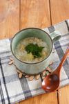 マグカップにごはんと水、鶏がらスープの素、塩を入れて混ぜる。 | |