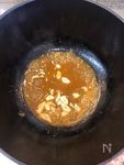 玉ねぎ、人参、A サフラン ひとつまみ、ぬるま湯 600cc、塩 小さじ1/2、こしょう 少々、ローリエ 1枚、コンソメ 小さじ1/2 を入れる。沸騰後フタをして弱火で10分ほど煮る。 |