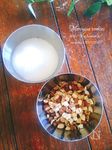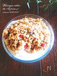 刻んだナッツ類とフルーツグラノーラを泡立てた卵白に入れる。 | |