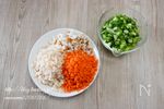 蓮根とにんじん、ちくわと青ネギは粗めのみじん切りにする。 | |