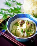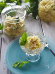 酢キャベツときゅうり、青じそ、細切り昆布、実山椒のしょうゆ漬けを混ぜて、ポン酢をかける。 | |