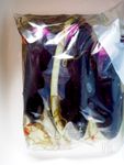 ポリ袋になすとA 水 200ml、塩 小さじ1、酢 小さじ2、細切り昆布 5g、赤唐辛子 1本 を入れて揉み込む。 |