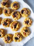 直径5cmに成形して上にB くるみ 30g、アーモンド 30g、レーズン 20g を飾る。 |