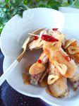 器に盛り、取り出した赤唐辛子、にんにくを添える。 | |