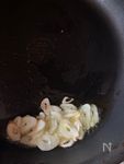フライパンにサラダ油を熱し、赤唐辛子、にんにくをこんがり炒めて取り出しておく。 | |