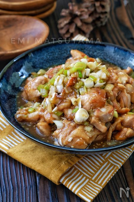 こちらはなんと調味料たったの2つ! ポン酢と砂糖でできちゃいます。味がよくなじむよう鶏肉の下味にもポン酢を使いました。鶏肉にまぶした片栗粉の効果で味もしっかり絡みますよ。ジューシーな鶏肉に、さっぱりした甘酢とたっぷりの長ねぎが絡んでご飯がすすみます!