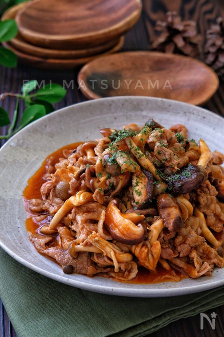 『調味料3つ!*豚肉ときのこの旨ケチャバター炒め』