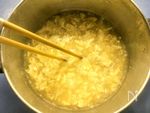 卵が少し固まって浮いてきたら箸で一気に混ぜ、最後にしょうがを入れて全体をさっと混ぜます。 | |