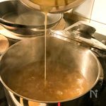 沸いた鍋に円を描くように細く卵を注ぎ入れて10~15秒待ちます。 | |