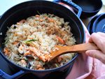 米とA しょうゆ 大さじ1、酒 大さじ1、白だし 小さじ1、塩 ひとつまみ、水 360ml をストウブに入れて軽くかき混ぜる。しめじ、塩鮭ものせて蓋をして中火にかける。 3~4分経ち沸々としてきたら、弱火におとして10分加熱する。 火を止めてさらに10分蒸らす。 |