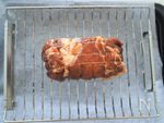 オーブンに入れる前、豚肉についているタレをなるべく除いてから焼いてください。タレが付きすぎていると焦げやすくなります。