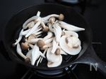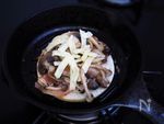 きのこは乾煎りしてからオイルを入れることで食感が良くなります。LODGEスキレットのグリルパンを使用しました。