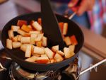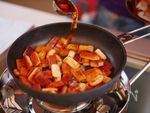 メープルシロップを加え、少し煮詰めたらお皿等に広げて冷ます。 |