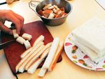 食パンの耳を切り落とし、更に一口大位の大きさに切る。 | |