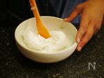 耐熱性の器にマシュマロとバターを入れ、電子レンジ500Wで30秒加熱して溶かす。 スプーンなどでよくかき混ぜておく。 |