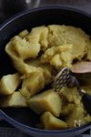 茹で上がった熱々のサツマイモをマッシャーで潰す。 | |