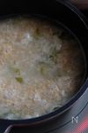 鍋か土鍋に塩と粥を入れ水を足して火にかける。アマランサス、キヌア、刻んだ七草も加える。 | |