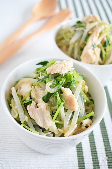 『【レンジで簡単!】もやしと豆苗のチキンナムル』