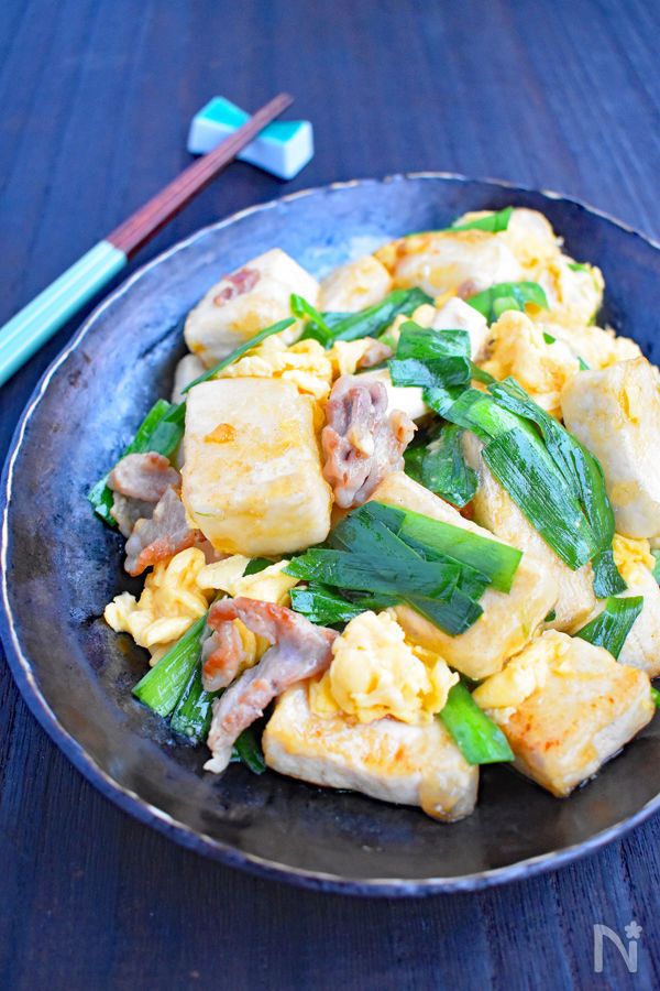 今が旬で香りの良いにらを使ったにら玉に、豆腐を加えてボリュームアップしました。使用する肉の量が少ないですが、ナンプラーの濃厚な風味で満足感が出ます。