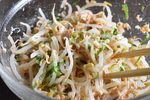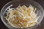 もやしは加熱後、水洗いすると風味が落ちるので、そのまま置き、あら熱が取れたら水分を軽く絞ってください。