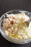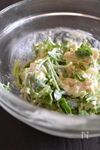 クリームチーズマヨネーズに、サラダチキン、長ねぎを加えてあえる。 | |