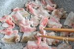 豚ばら肉は一口大に切って、塩、こしょうをふる。 フライパンにサラダ油、にんにくみじん切りを入れて熱して火を弱め、豚ばら肉を加えて弱火で炒める。 |