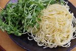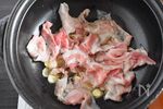 豚バラ薄切り肉は食べやすい大きさに切って塩・こしょうをふる。 にんにくは薄くスライスする。 豆苗は3cmに切り、もやしと合わせて洗い水をきる。 |