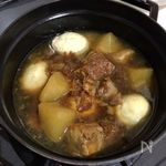 ⑤は火を止めて自然放置し、ピンが下がり蓋が開くようになったら、煮汁を2/3~半量になる程度まで煮詰める。 ※その際、豚バラ肉・大根は保存用の別鍋等に移すと味が濃くなりすぎず煮崩れません。 半熟卵を加え、数時間置いてからお召し上がりください。 |